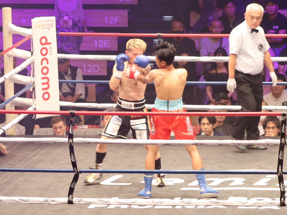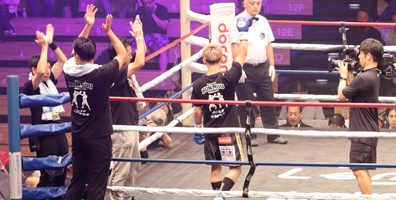 3R 1分18秒、ストップによるTKOでゴウの勝ちが決まった。